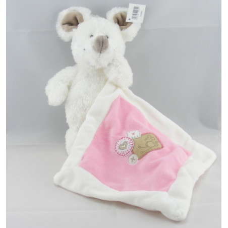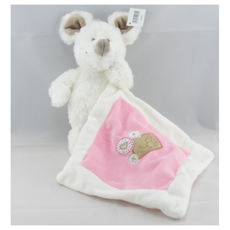 Doudou Souris blanche avec doudou mouchoir rose NICOTOY23 cm env.