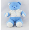 Doudou Ours bleu en chemise blanche Musti Mustela 25cm environ