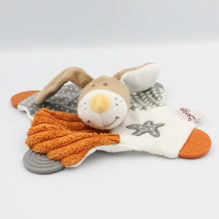Doudou plat lapin marron orange blanc Milo Bengy