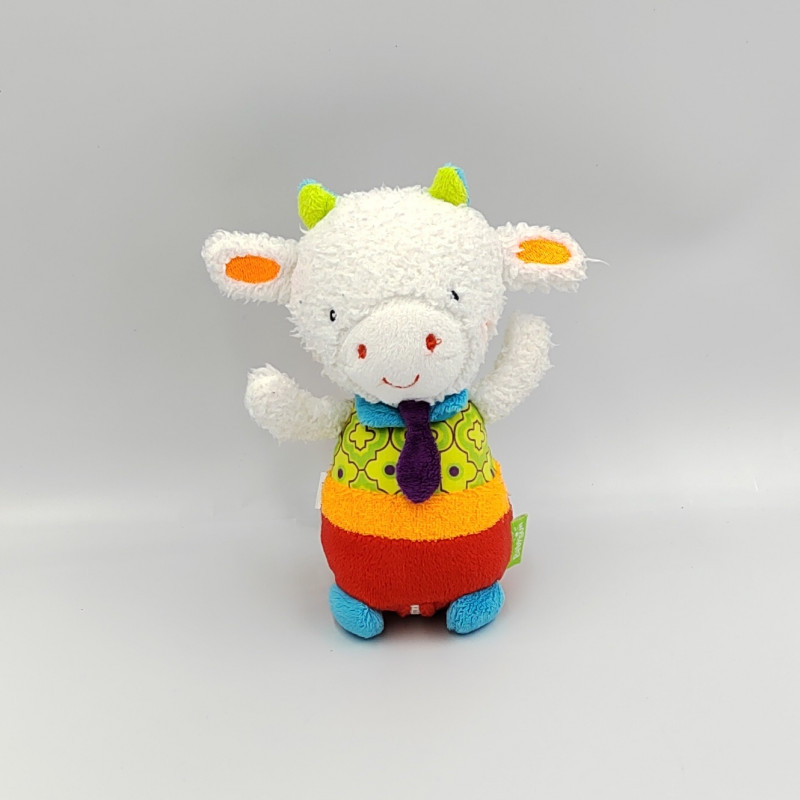 Doudou musical vache blanche rouge orange vert bleu BABYSUN