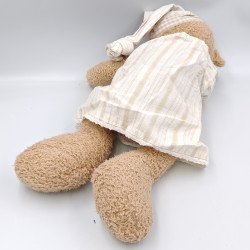 Peluche ours beige robe pyjama blanc rayé beige LA GALLERIA