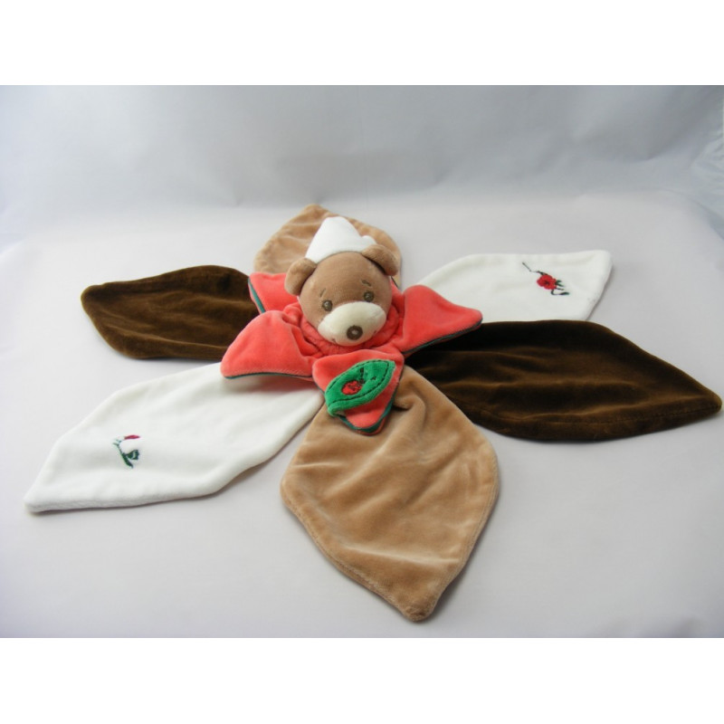 Doudou plat fleur pétale ours marron blanc rouge TAKINOU