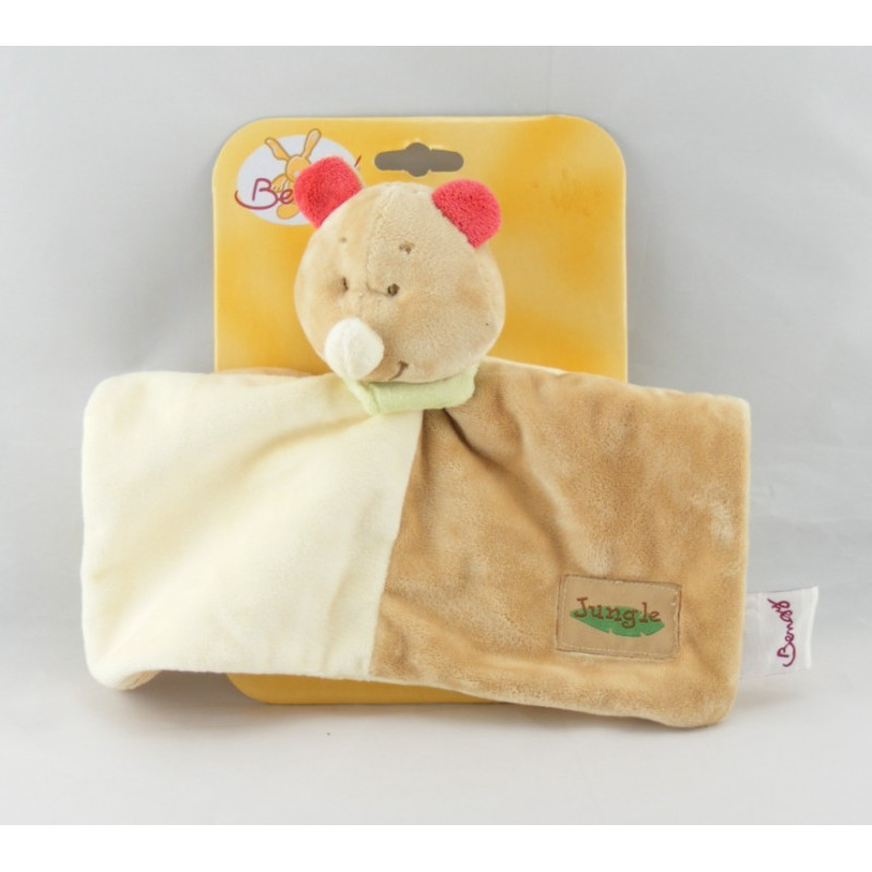 Doudou plat rhinocéros beige foulard vert Jungle BENGY
